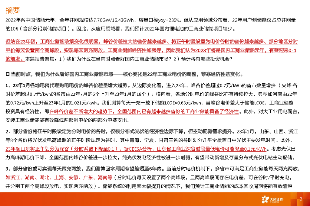 天风证券:国内工商业储能行业深度研究:多层次电价政策变化,把握从0-1、点到面的投资机会.pdf