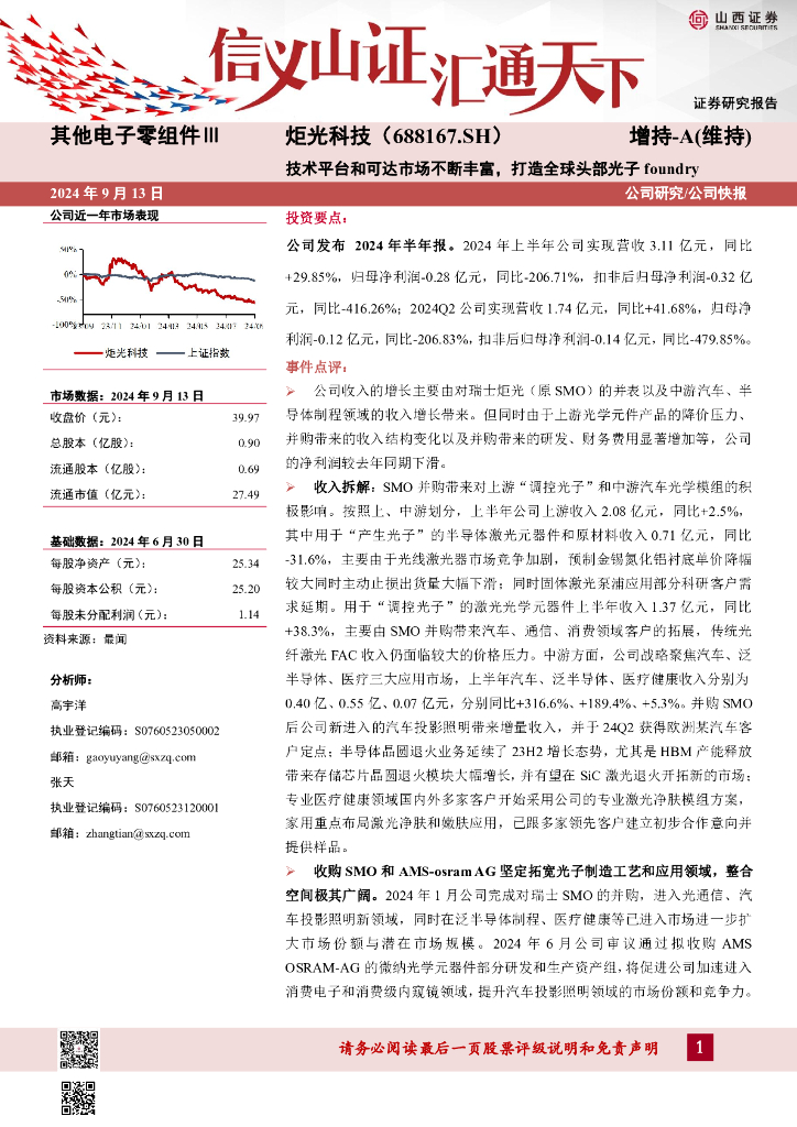 山西证券:炬光科技(688167)-技术平台和可达市场不断丰富,打造全球头部光子foundry公司研究/公司快报.pdf