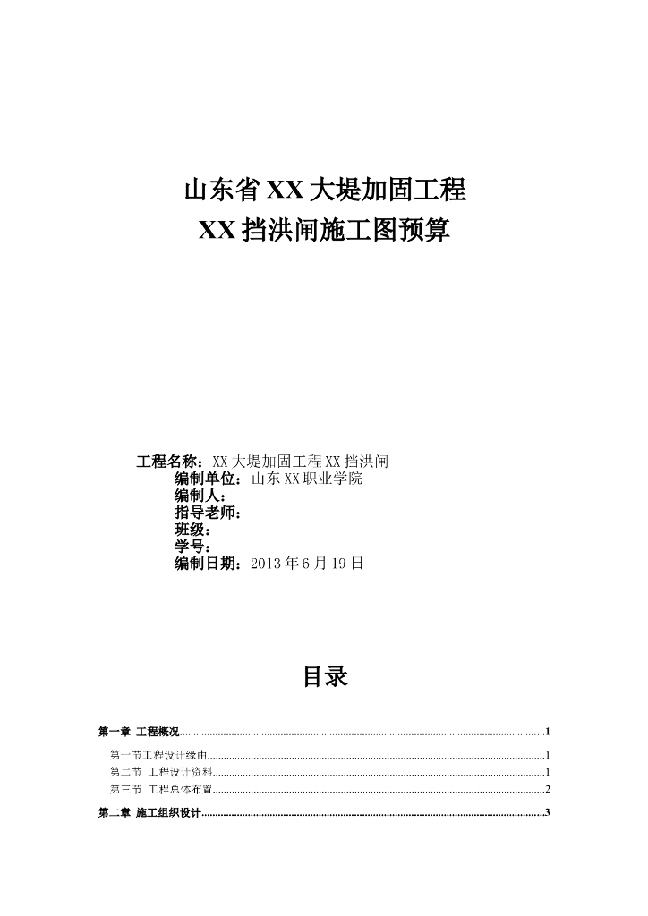 大堤加固及挡洪闸工程施工图预算.doc