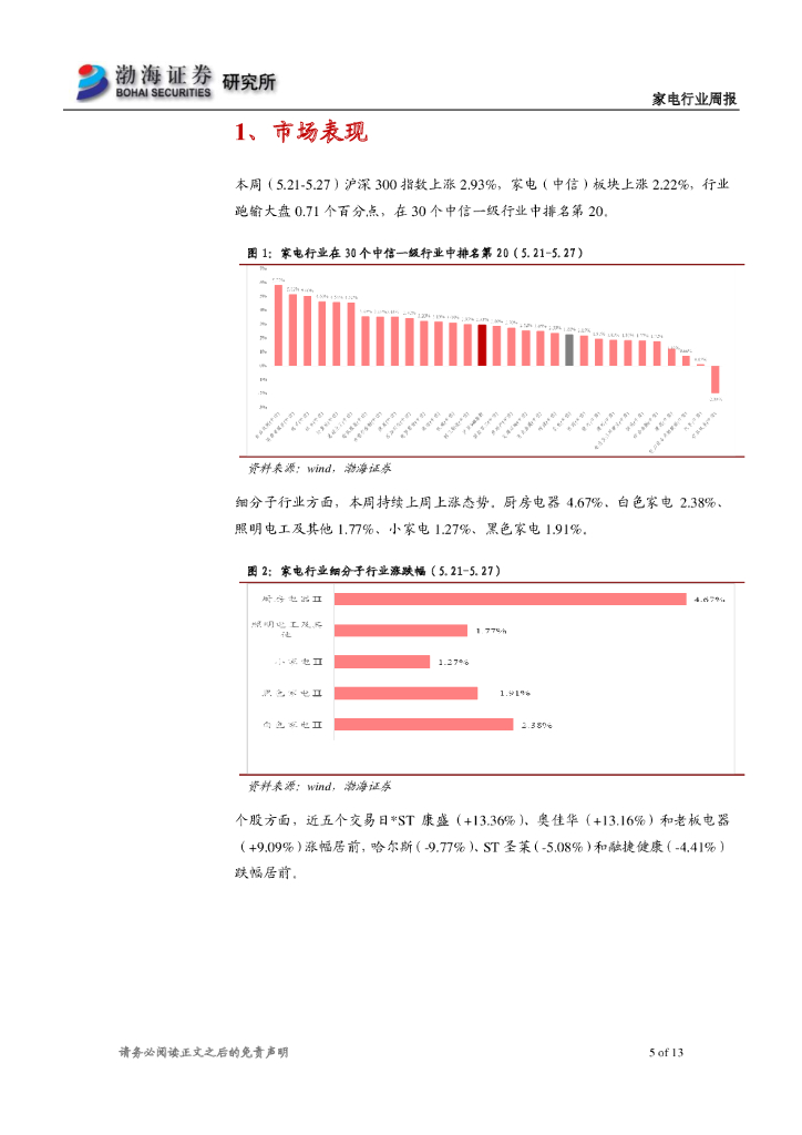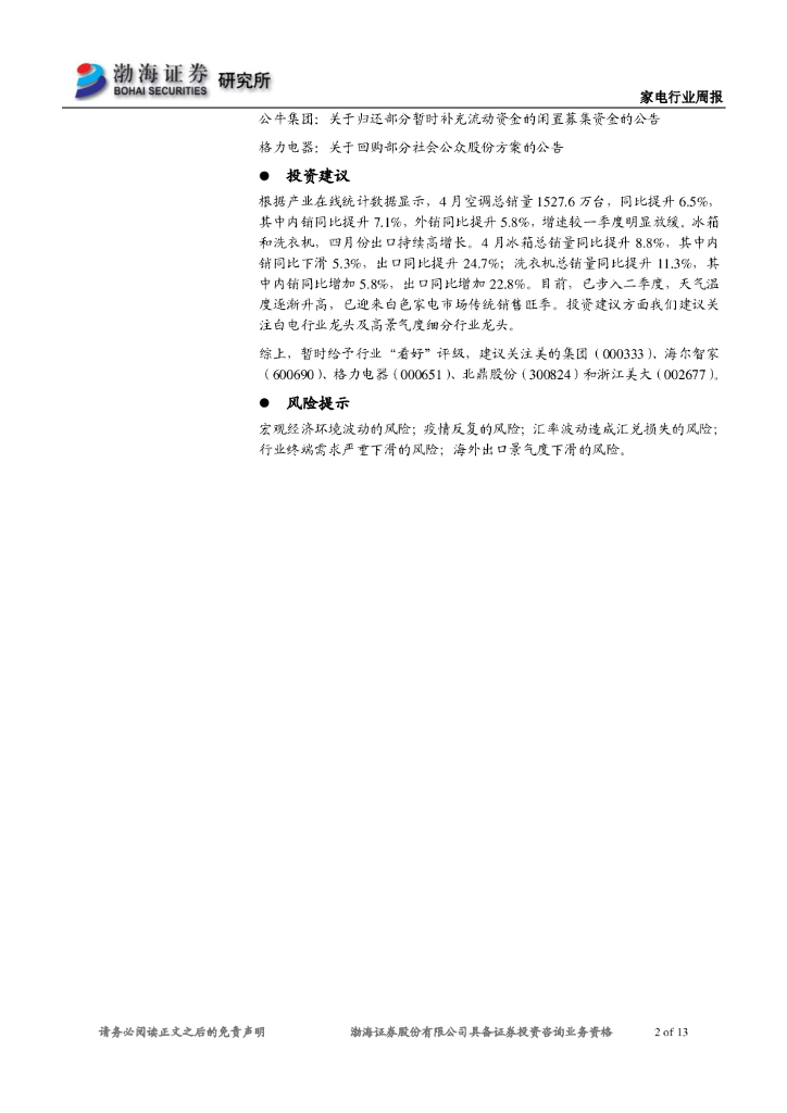渤海证券:家电行业周报:4月空调销量增速放缓,冰洗出口持续高增长.pdf