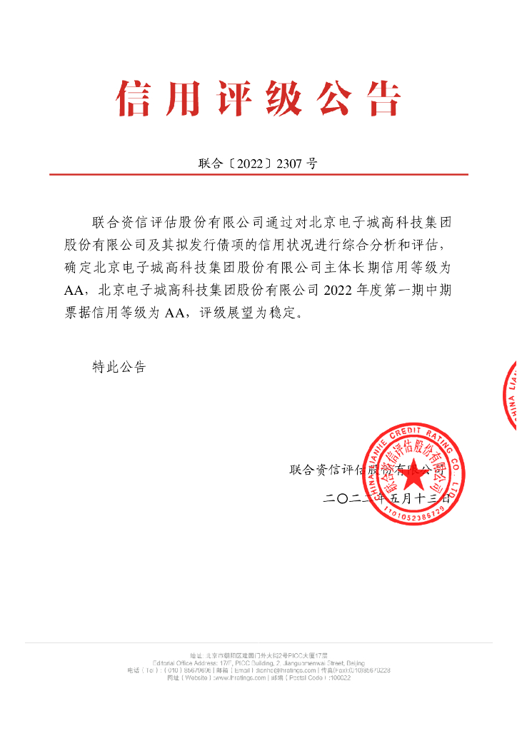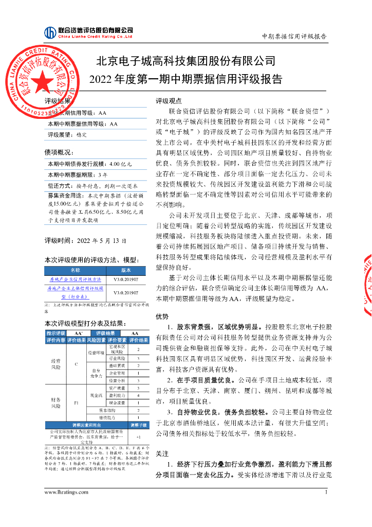 联合资信:北京电子城高科技集团股份有限公司2022年度第一期中期票据信用评级报告.pdf