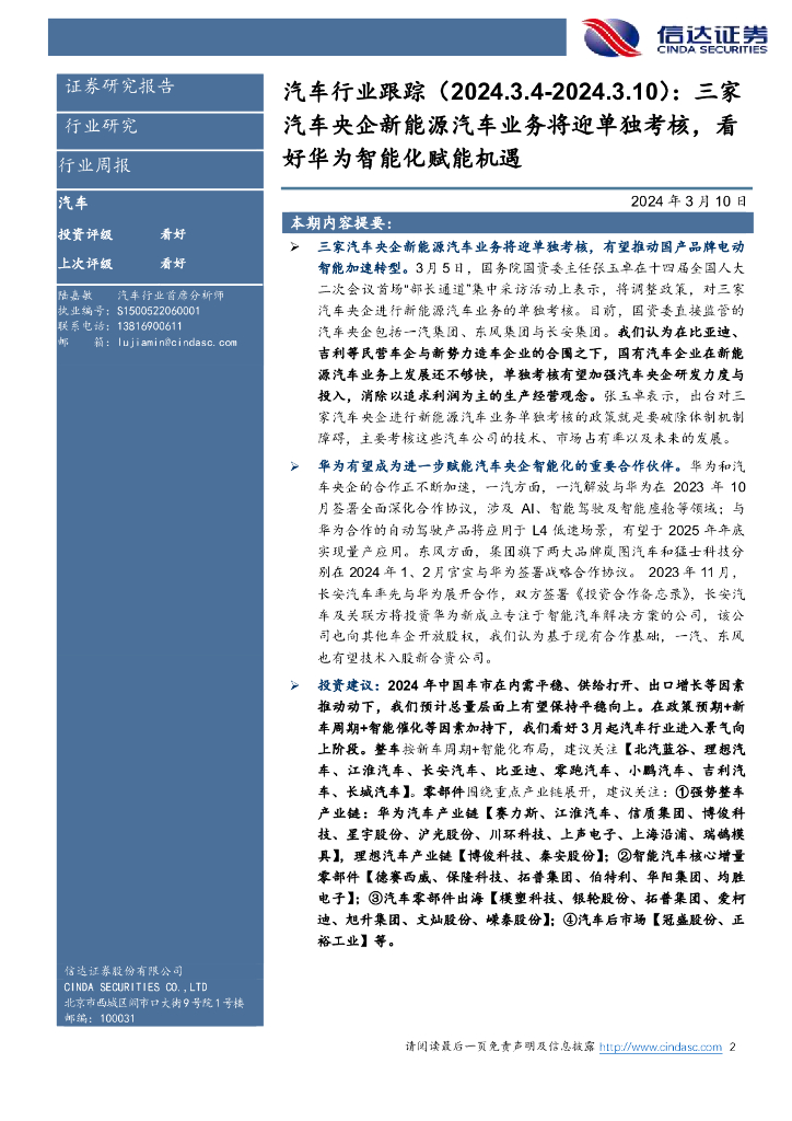 信达证券:汽车行业跟踪:三家汽车央企新能源汽车业务将迎单独考核,看好华为智能化赋能机遇.pdf