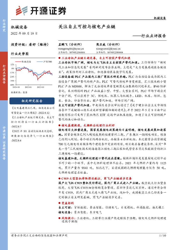 开源证券:机械设备行业点评报告:关注自主可控与核电产业链.pdf