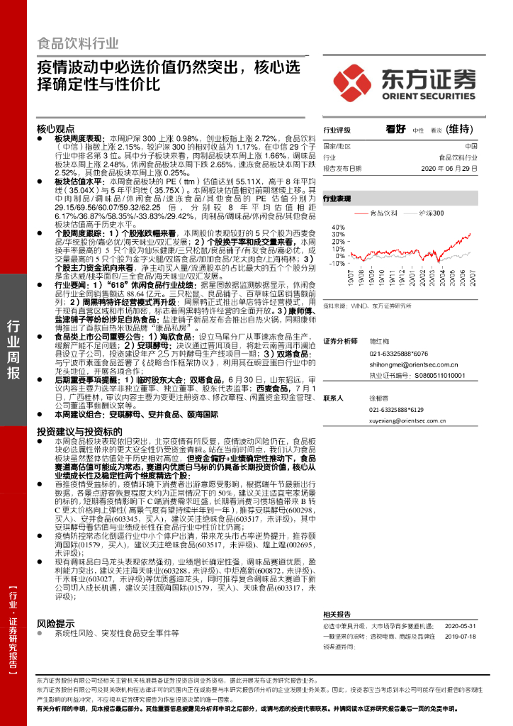 东方证券:食品饮料行业周报:疫情波动中必选价值仍然突出,核心选择确定性与性价比.pdf