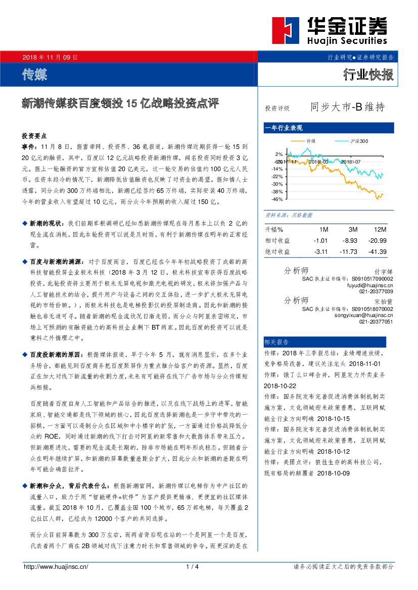 华金证券:传媒行业快报:新潮传媒获百度领投15亿战略投资点评.pdf
