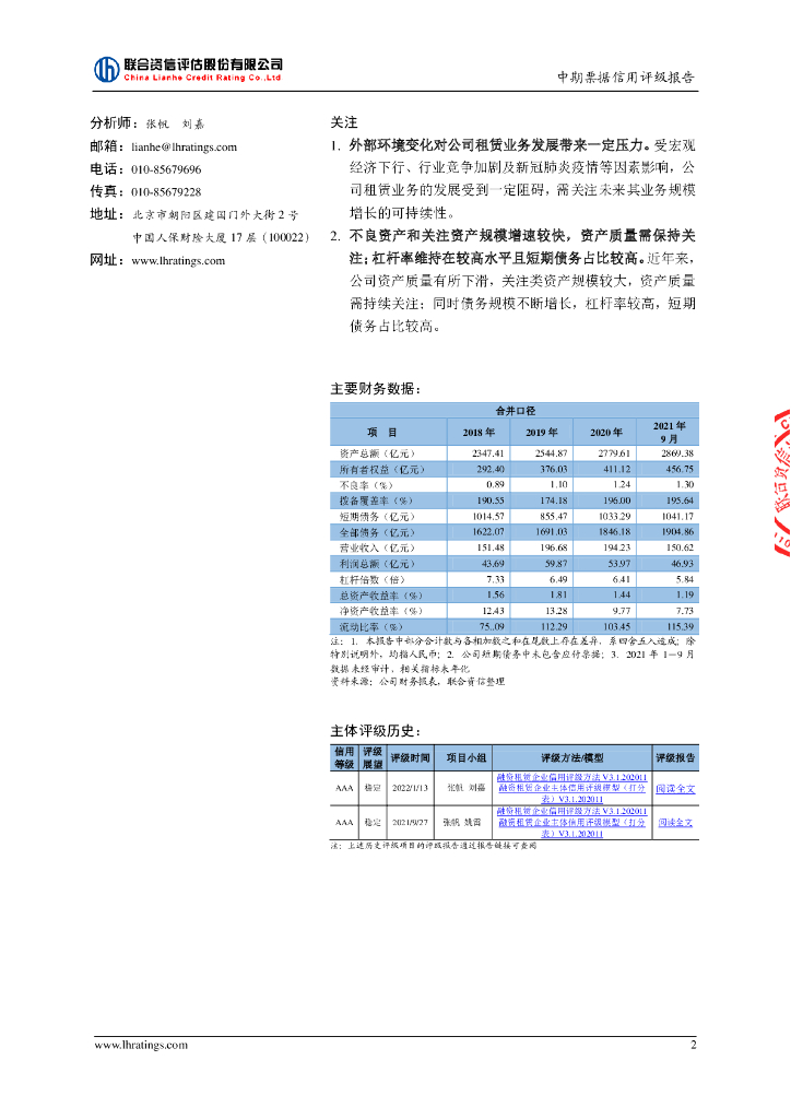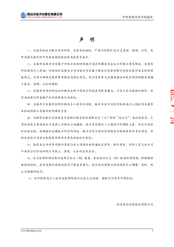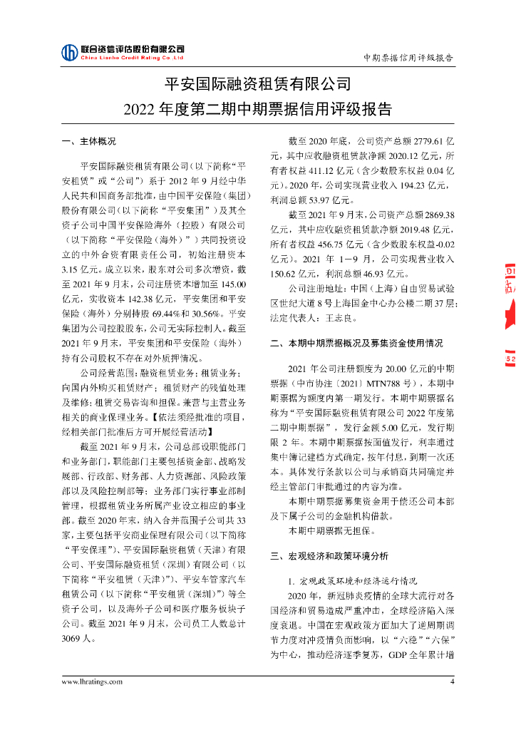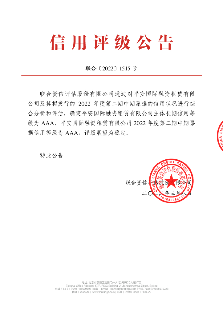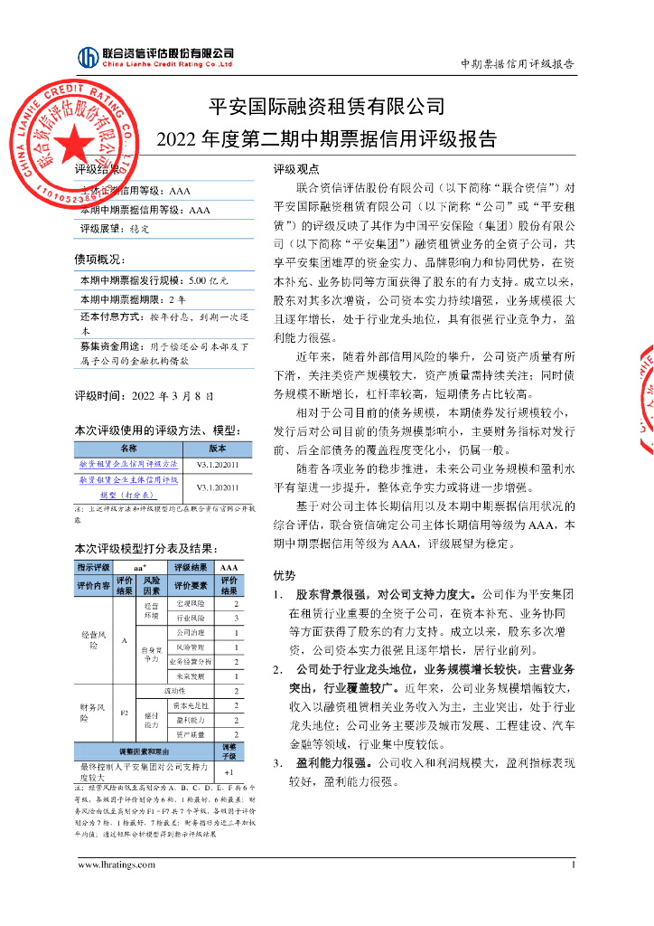 联合资信:平安国际融资租赁有限公司2022年度第二期中期票据信用评级报告及跟踪评级安排.pdf