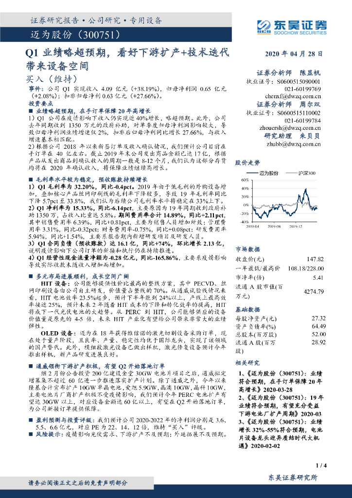 东吴证券:迈为股份(300751)-Q1业绩略超预期,看好下游扩产+技术迭代带来设备空间.pdf
