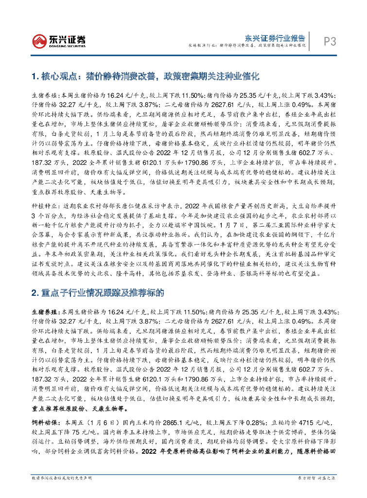 东兴证券:行业周观点(2023年第1周):农林牧渔行业:猪价静待消费改善,政策密集期关注种业催化.pdf