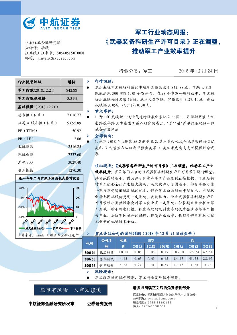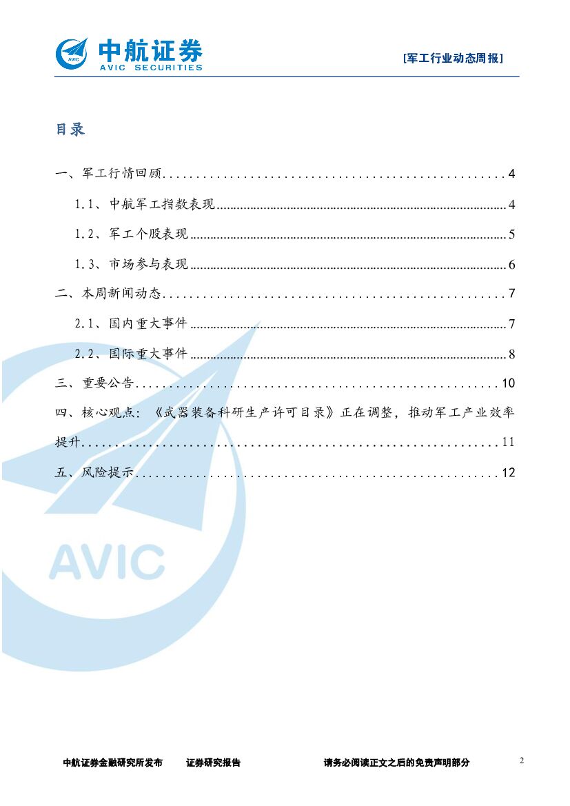 中航证券:军工行业动态周报:《武器装备科研生产许可目录》正在调整,推动军工产业效率提升.pdf