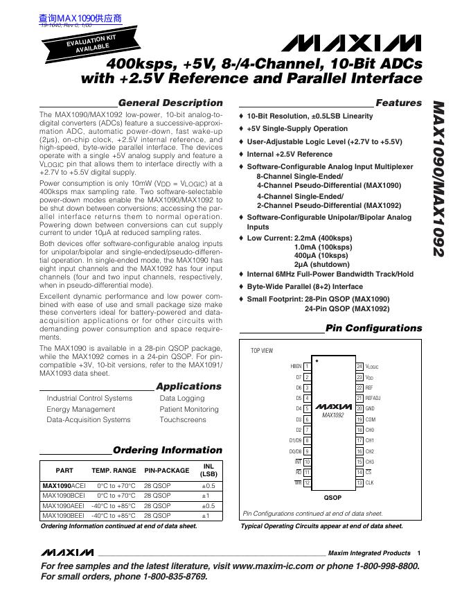 MAXIM MAX1090/MAX1092 数据手册.pdf