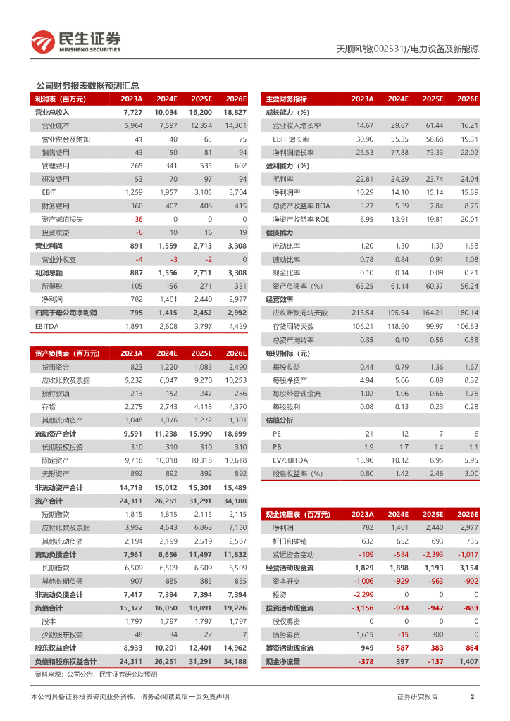 民生证券:天顺风能(002531)-2023年年报及2024一季报点评:多业务领域积极拓展,全球竞争力持续强化.pdf