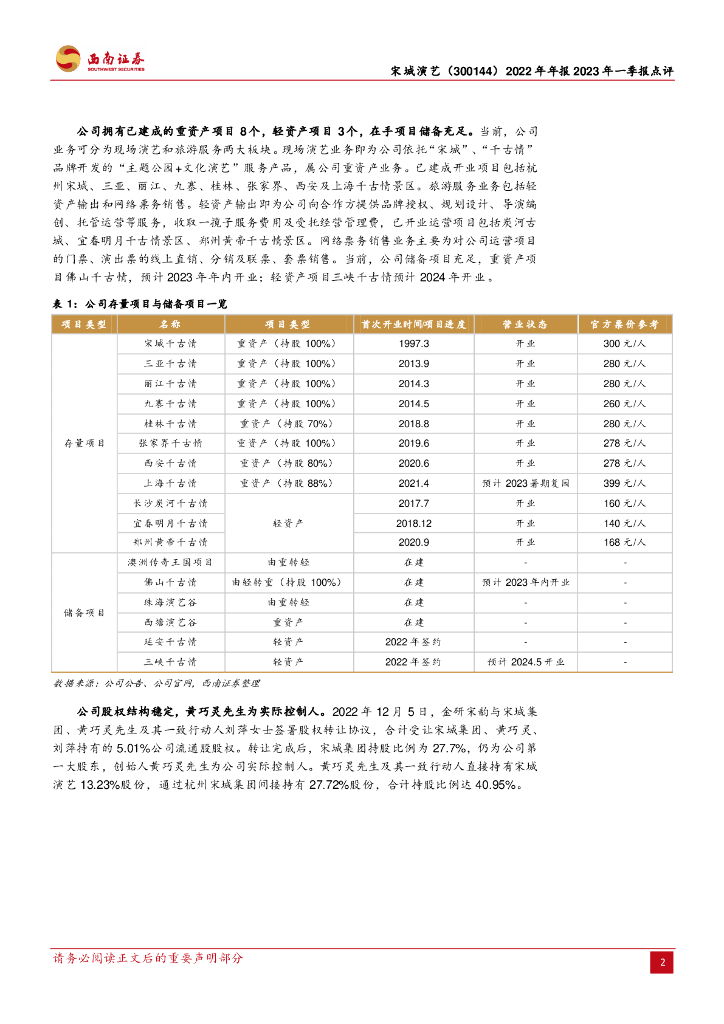 西南证券:宋城演艺(300144)-文化演艺龙头企业,23Q1业绩改善明显.pdf