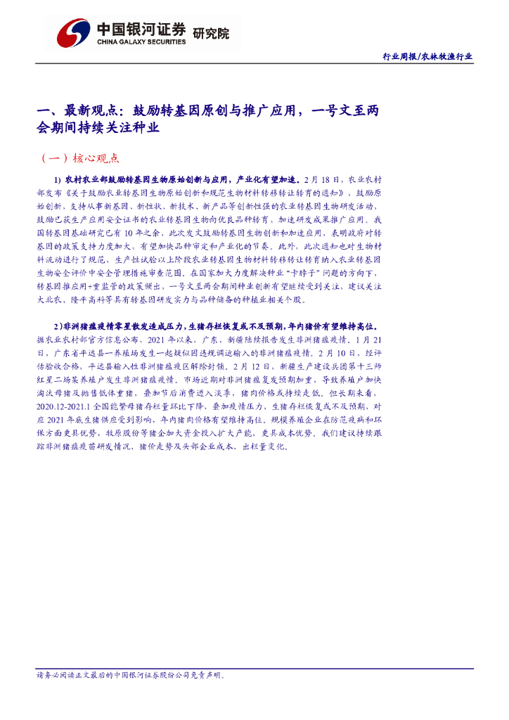 中国银河:农林牧渔行业:鼓励转基因创新与应用,一号文至两会期间继续关注种业机会.pdf