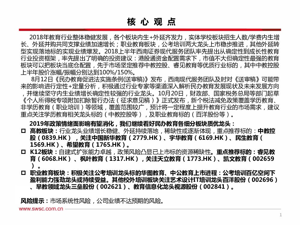 西南证券:教育行业2019年投资策略:政策影响有望消化,建议布局业绩确定性资产.pdf