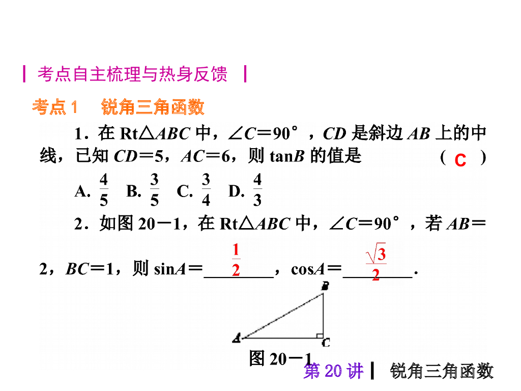 中考复习课件【第20讲】锐角三角函数(40页)ppt课件.ppt