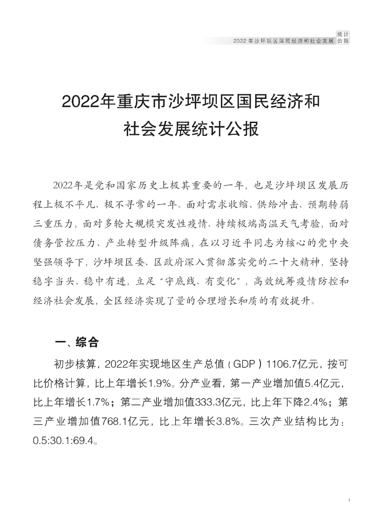 2022年重庆市沙坪坝区国民经济和社会发展统计公报.pdf