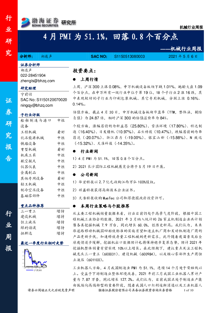渤海证券:机械行业周报:4月PMI为51.1%,回落0.8个百分点.pdf