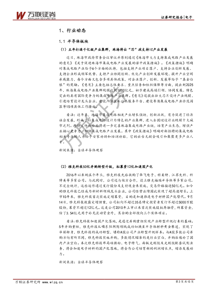 万联证券:电子行业周观点:珠海将出“芯”政支持IC产业,雅克科技成为并购转型样本.pdf