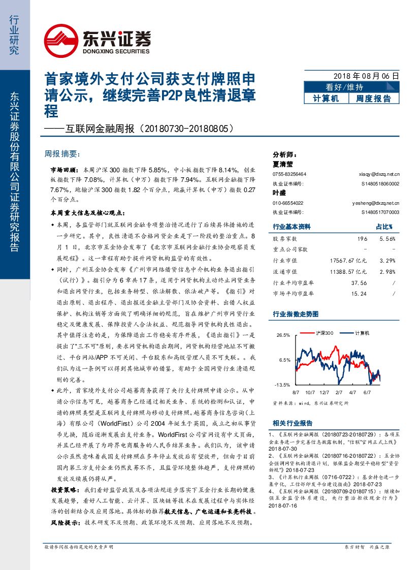 东兴证券:互联网金融周报:首家境外支付公司获支付牌照申请公示,继续完善P2P良性清退章程.pdf