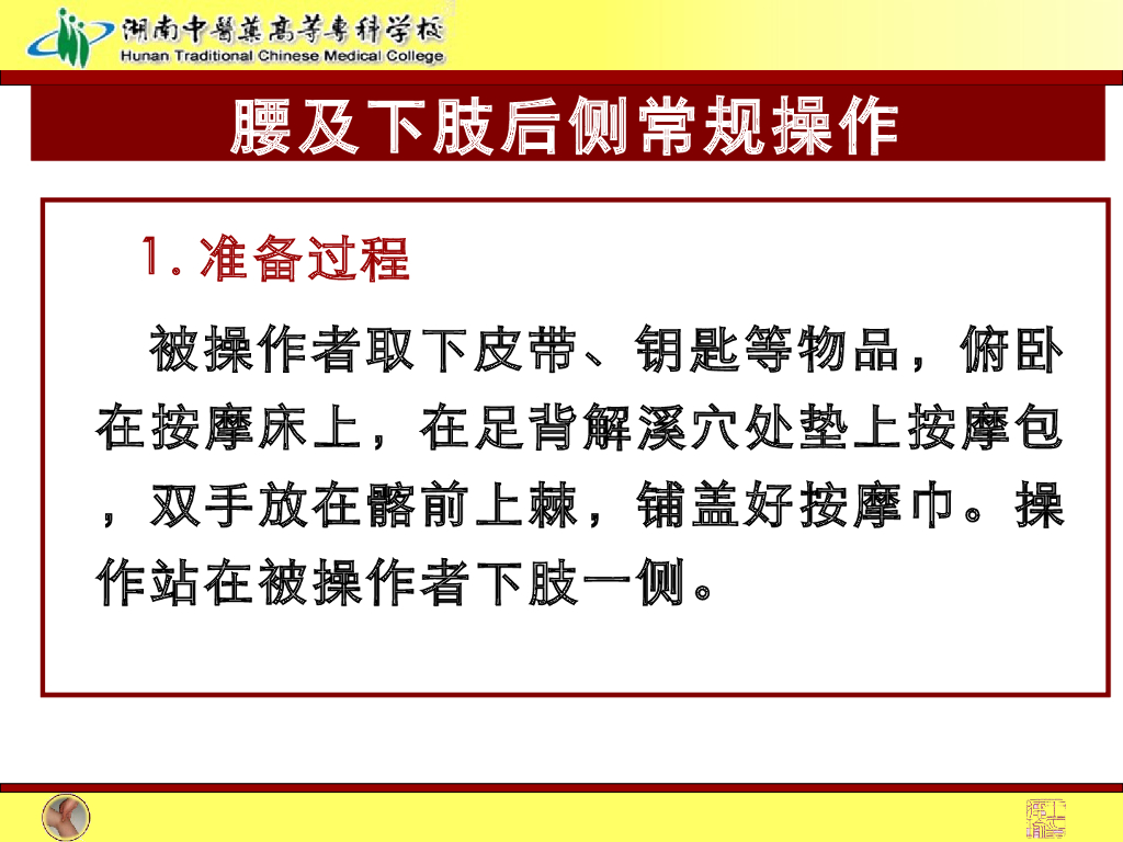 《推拿手法技术》演示文稿-腰背及下肢后侧常规操作法1.pdf