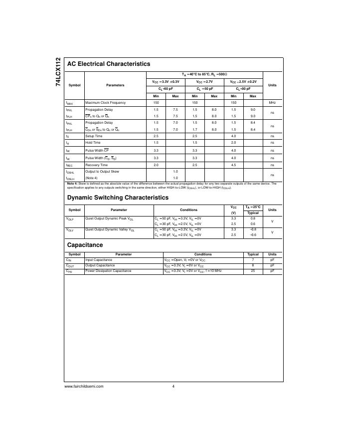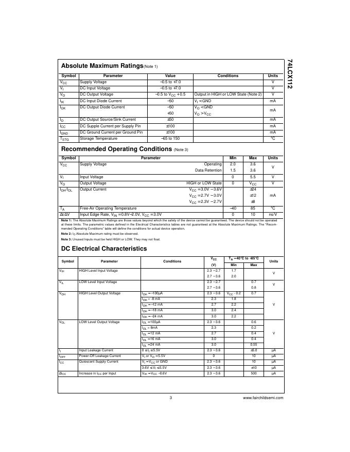FAIRCHILD 74LCX112 Low Voltage Dual J-K Negative Edge-Triggered Flip-Flop with 5V Tolerant Inputs 数据手册.pdf