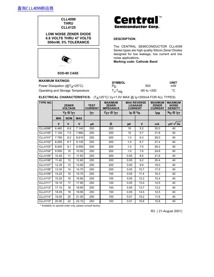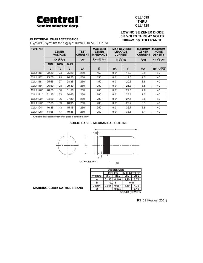 Central Semiconductor CLL4099 THRU CLL4125 数据手册.pdf