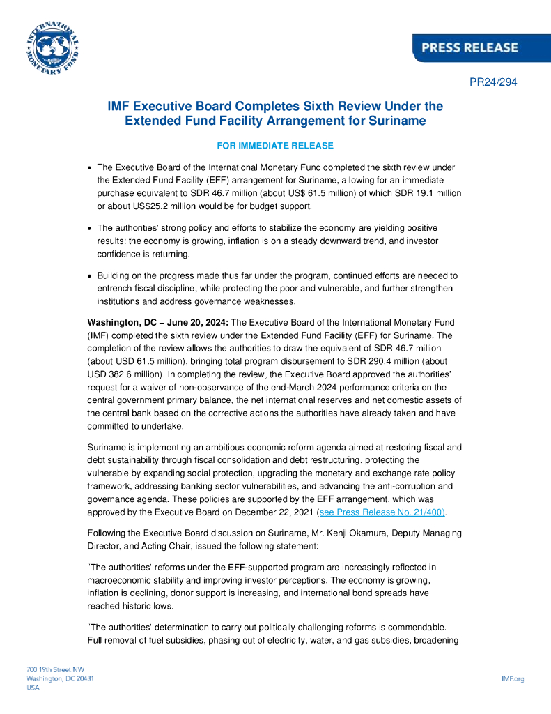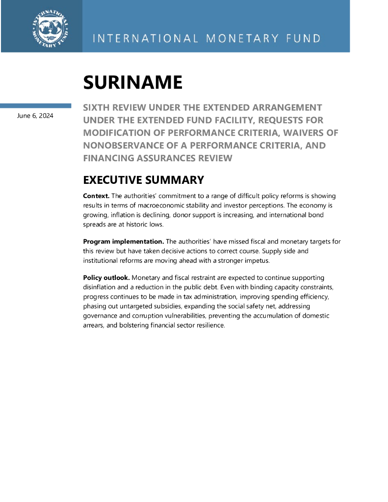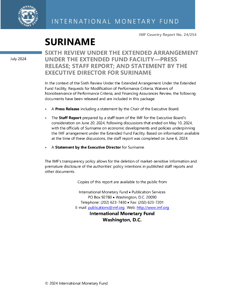 国际货币基金组织:2024年苏里南:根据扩展基金机制下的扩展安排进行的第六次审议新闻稿;员工报告(英文版).pdf