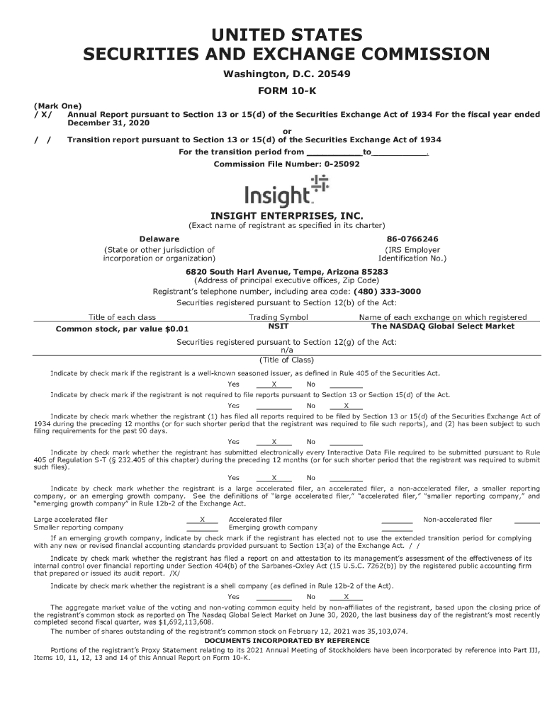 Insight Enterprises, Inc.(NSIT)2020财年年度报告(英文版).pdf