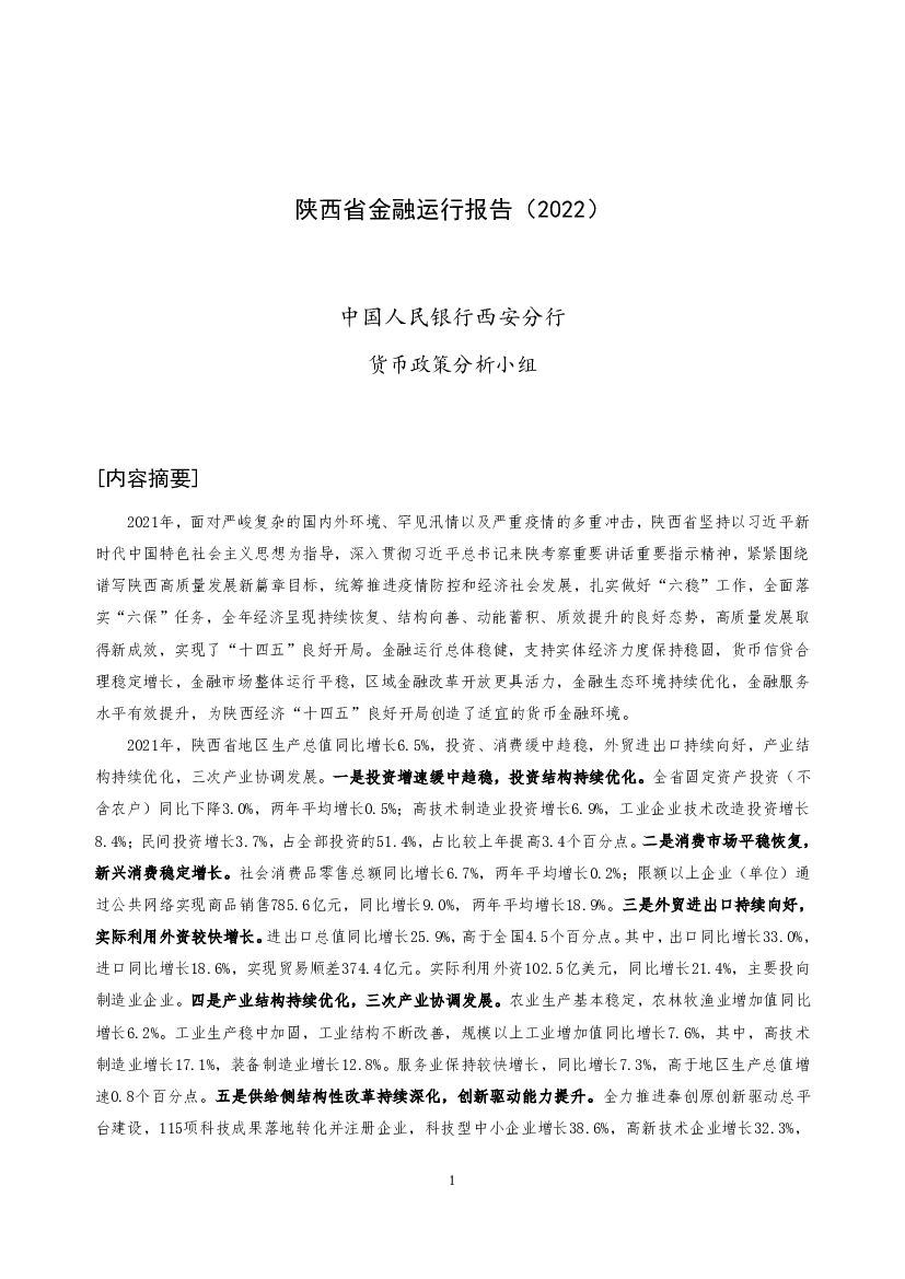 中国人民银行:陕西省金融运行报告(2022).pdf