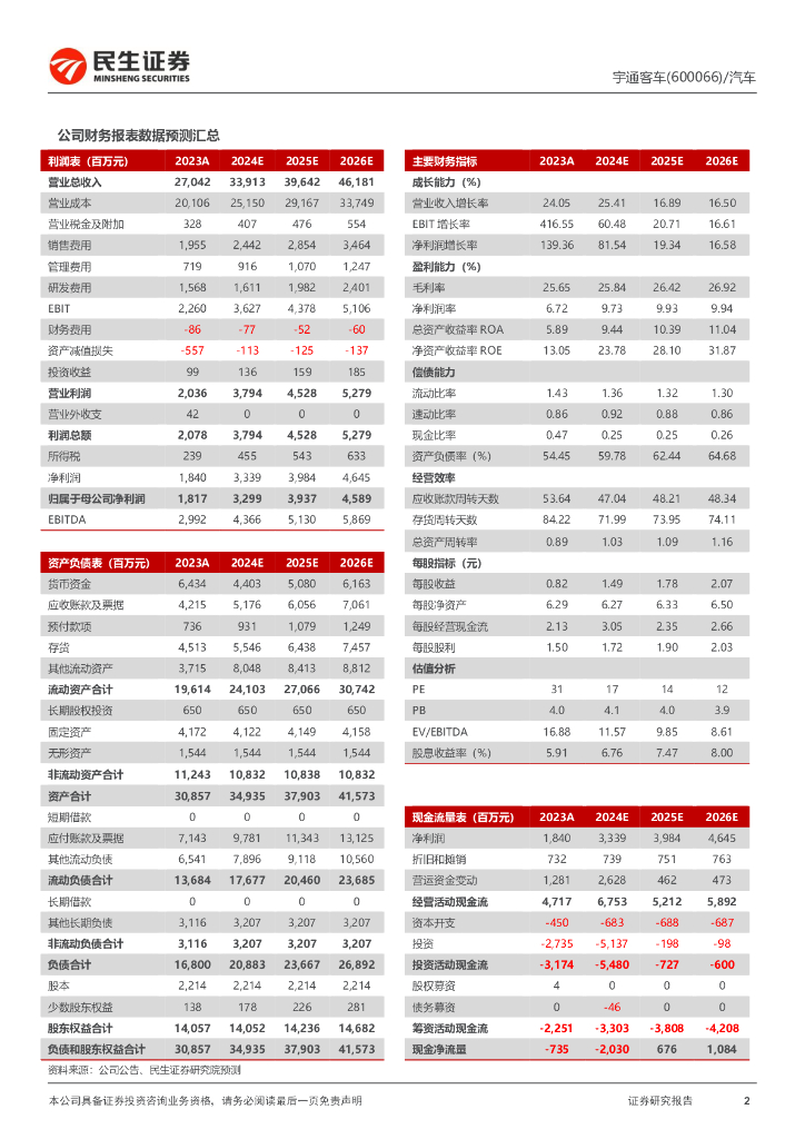 民生证券:宇通客车(600066)-系列点评一:24Q2业绩超预期客车龙头走向世界.pdf