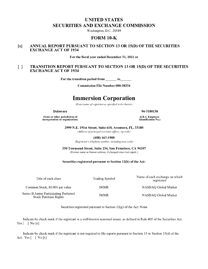 Immersion(IMMR)2021财年年度报告(英文版).pdf