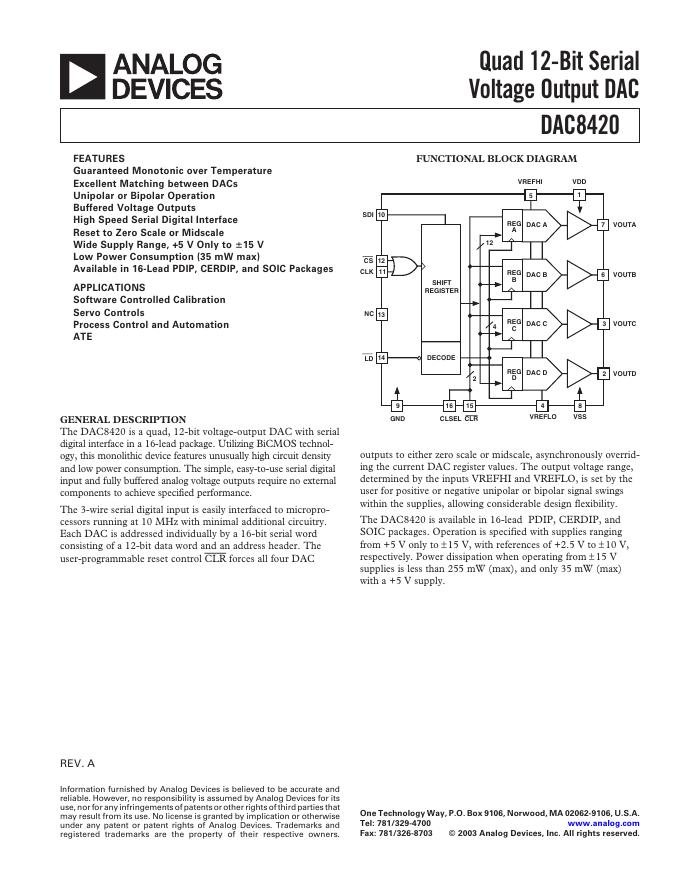 ANALOG DEVICES DAC8420 数据手册.pdf