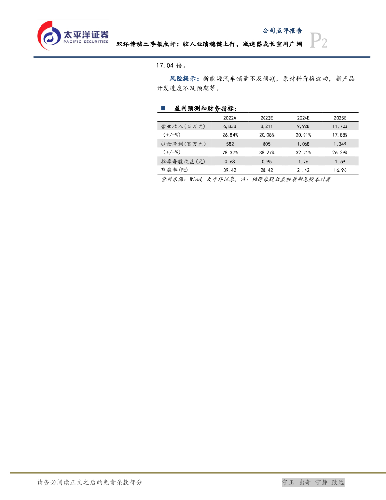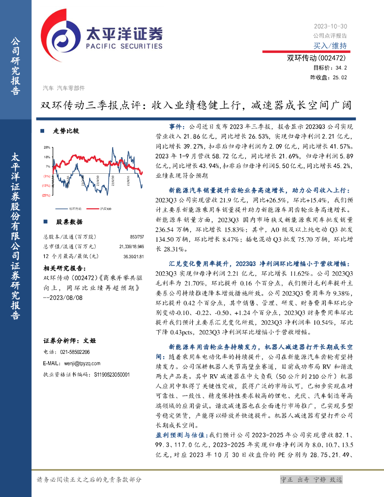 太平洋证券:双环传动(002472)-三季报点评:收入业绩稳健上行,减速器成长空间广阔.pdf