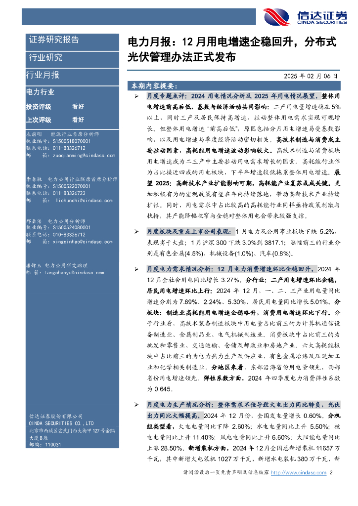 信达证券:电力行业12月月报:12月用电增速企稳回升,分布式光伏管理办法正式发布.pdf