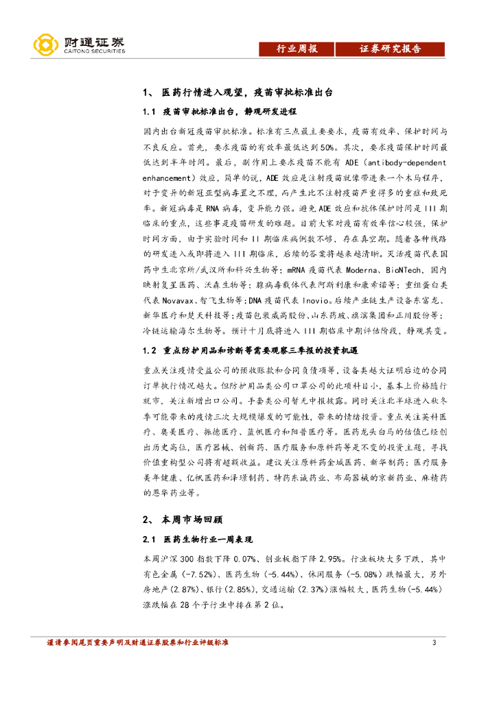 财通证券:“药”倾听市场的声音第一百一十六期:医药行情进入观望,疫苗审批标准出台.pdf