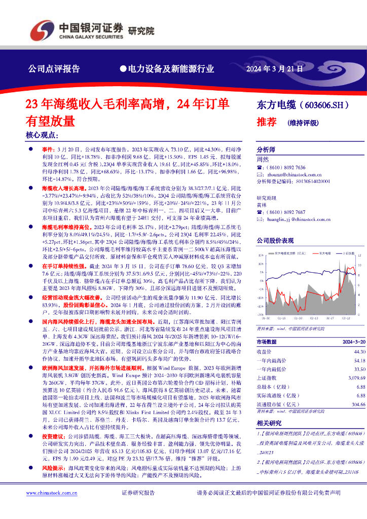 中国银河:东方电缆(603606)-23年海缆收入毛利率高增,24年订单有望放量.pdf