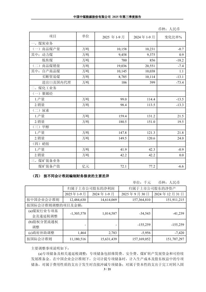 601898-中煤能源:中国中煤能源股份有限公司2025年第三季度报告.pdf