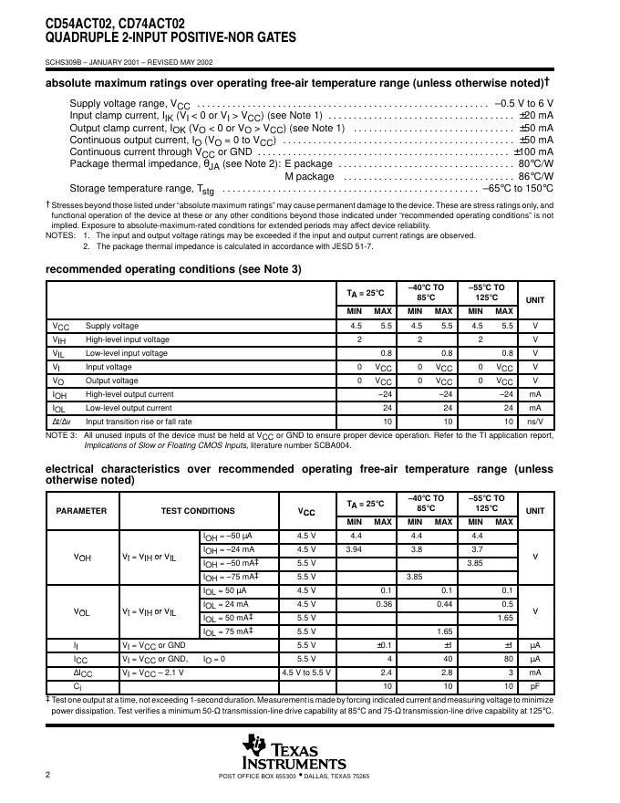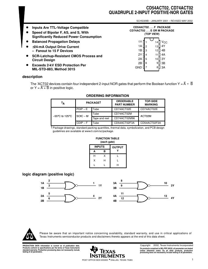 TEXAS INSTRUMENTS CD54ACT02, CD74ACT02 数据手册.pdf