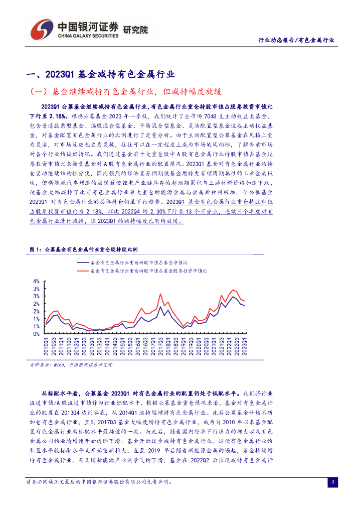 中国银河:有色金属行业2023Q1基金持仓分析:交易国内经济复苏与海外美联储边际宽松的逻辑主线配置.pdf