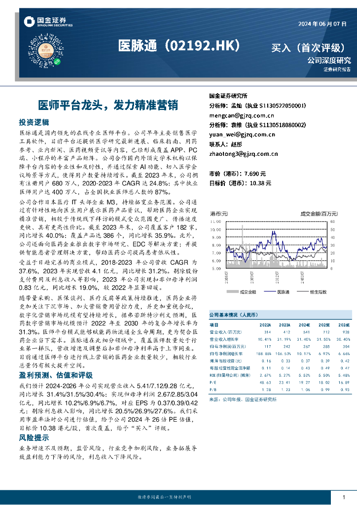 国金证券:医脉通(02192)港股公司研究报告-医师平台龙头,发力精准营销.pdf
