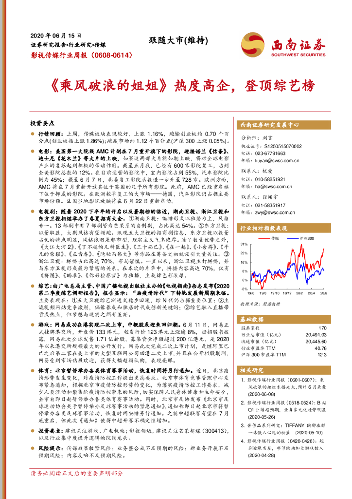 西南证券:影视传媒行业周报:《乘风破浪的姐姐》热度高企,登顶综艺榜.pdf