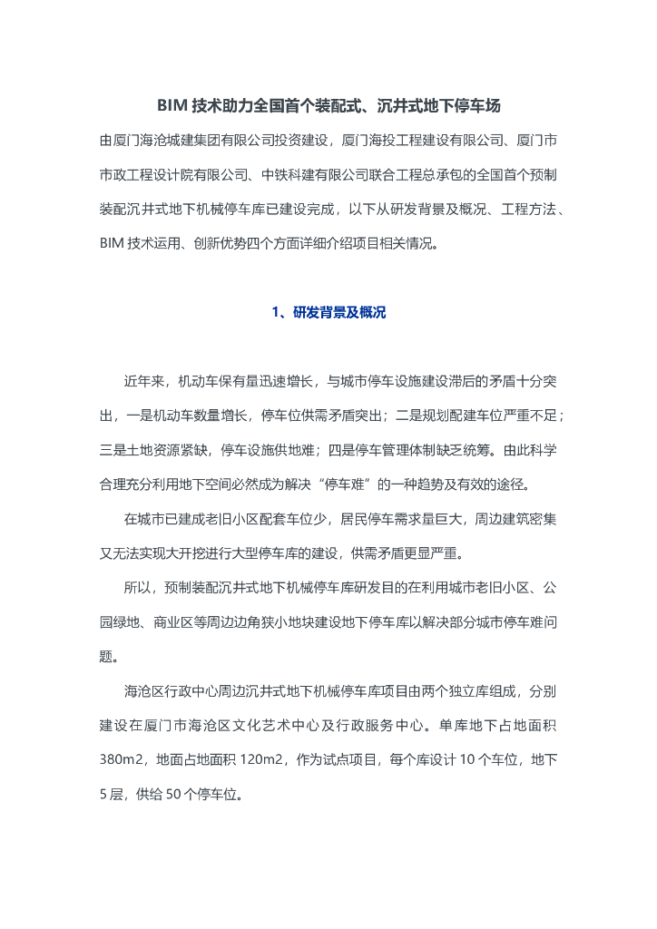 BIM技术助力全国首个装配式、沉井式地下停车场.doc