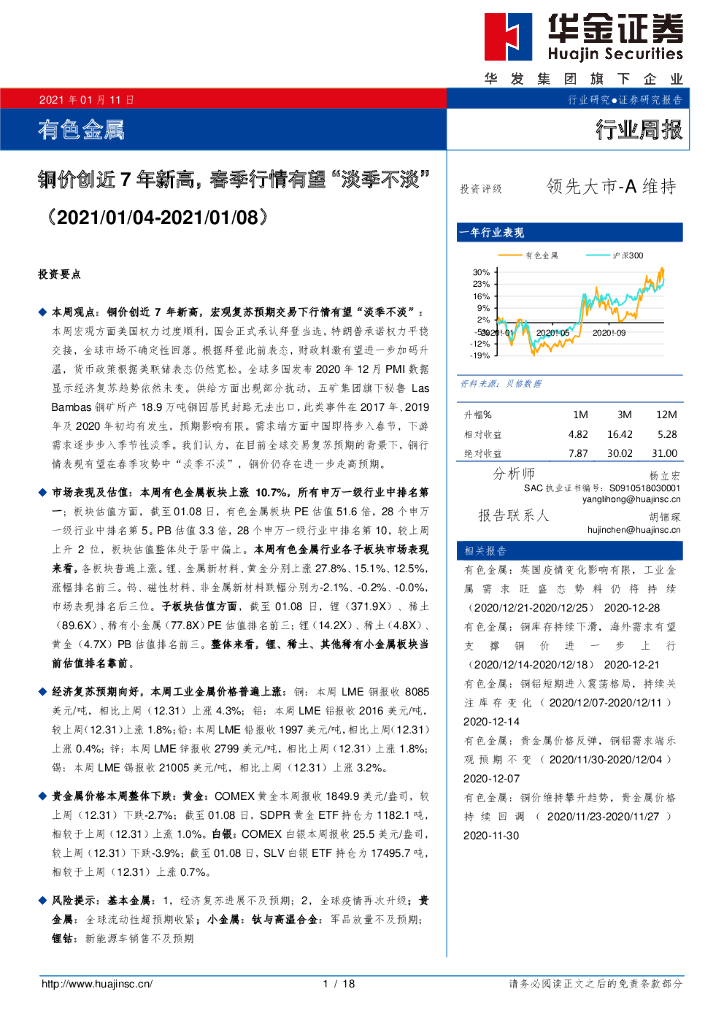 华金证券:有色金属行业周报:铜价创近7年新高,春季行情有望“淡季不淡”.pdf
