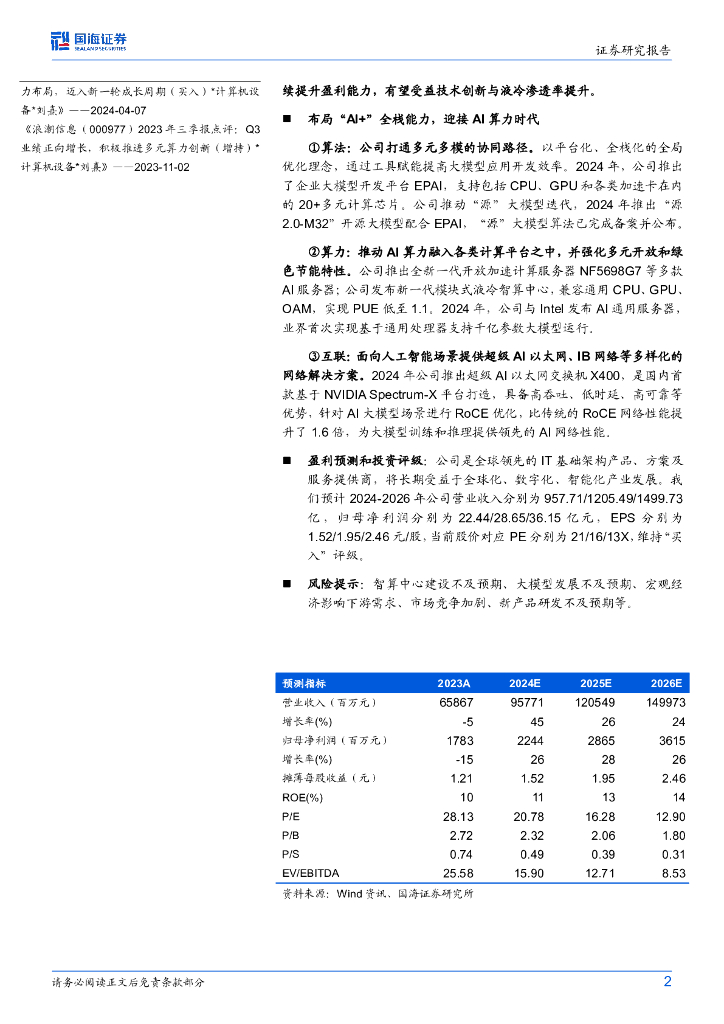 国海证券:浪潮信息(000977)-2024年半年报点评:布局“AI+”全栈能力,海外收入同比增长172%.pdf