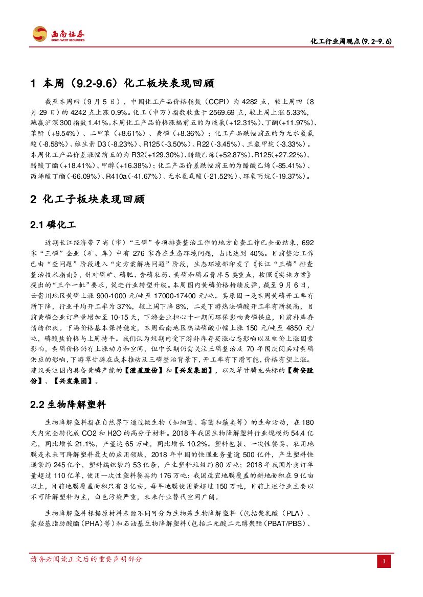 西南证券:化工行业周观点:黄磷价格卷土重来,生物降解材料需求高速增长.pdf