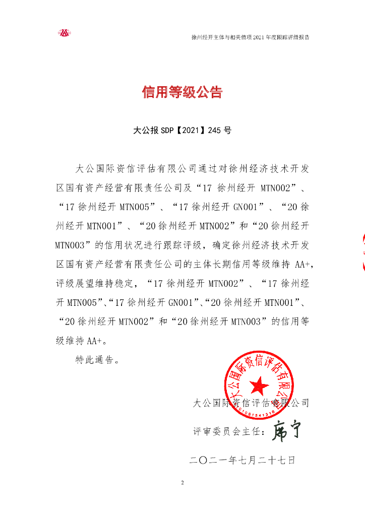 大公:徐州经济技术开发区国有资产经营有限责任公司主体评级报告及跟踪评级安排.pdf