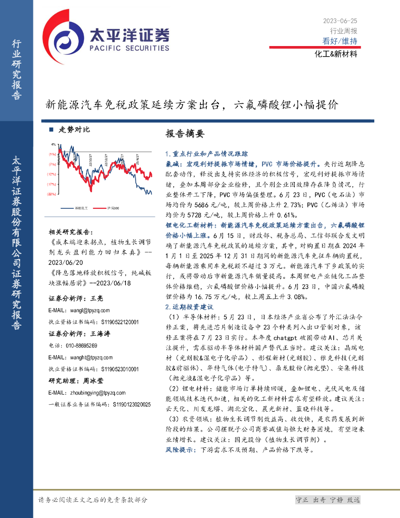 太平洋证券:化工&新材料行业周报:新能源汽车免税政策延续方案出台,六氟磷酸锂小幅提价.pdf