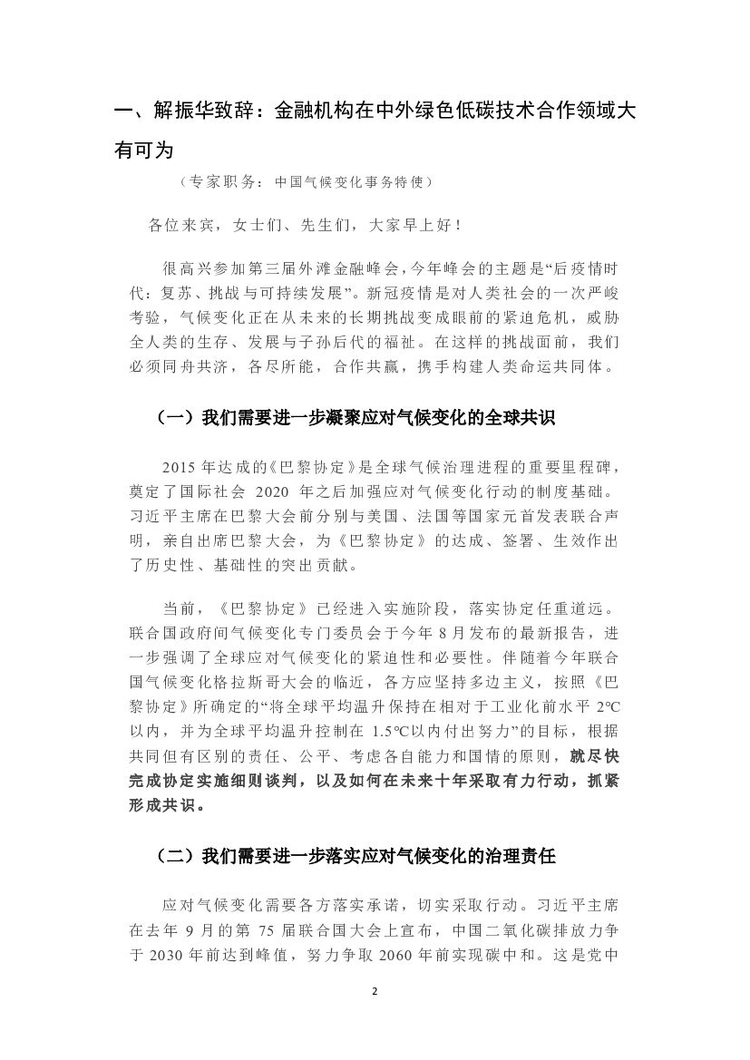 上海外滩峰会:第三届金融外滩峰会专家演讲实录(碳中和领域).pdf