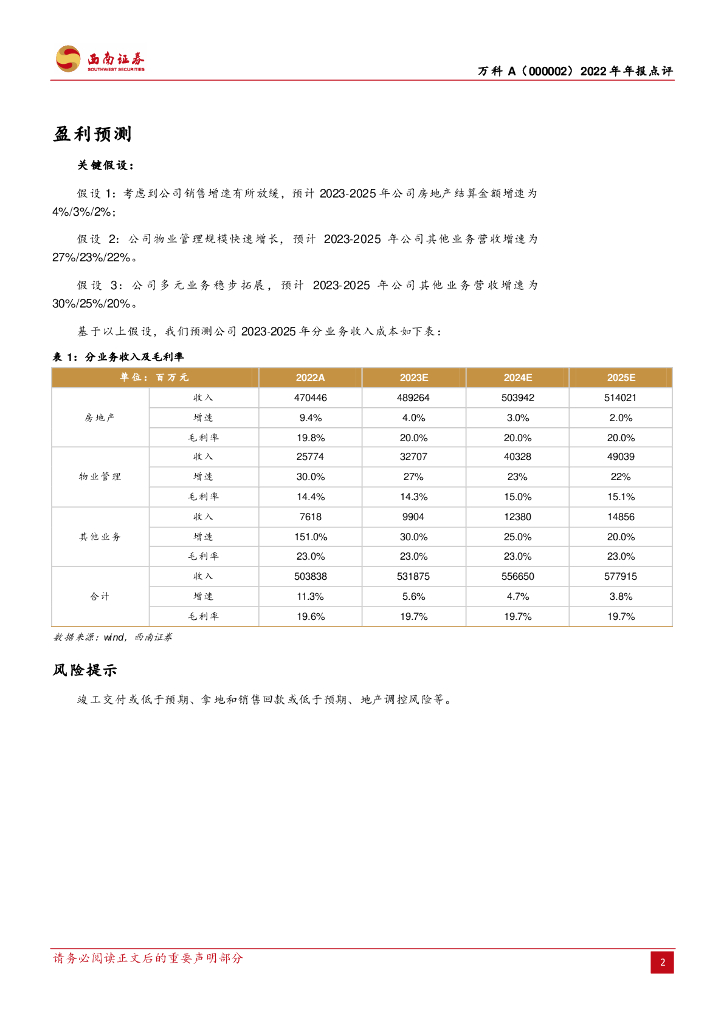 西南证券:万科A(000002)-业绩表现平稳,多元业务稳步拓展.pdf