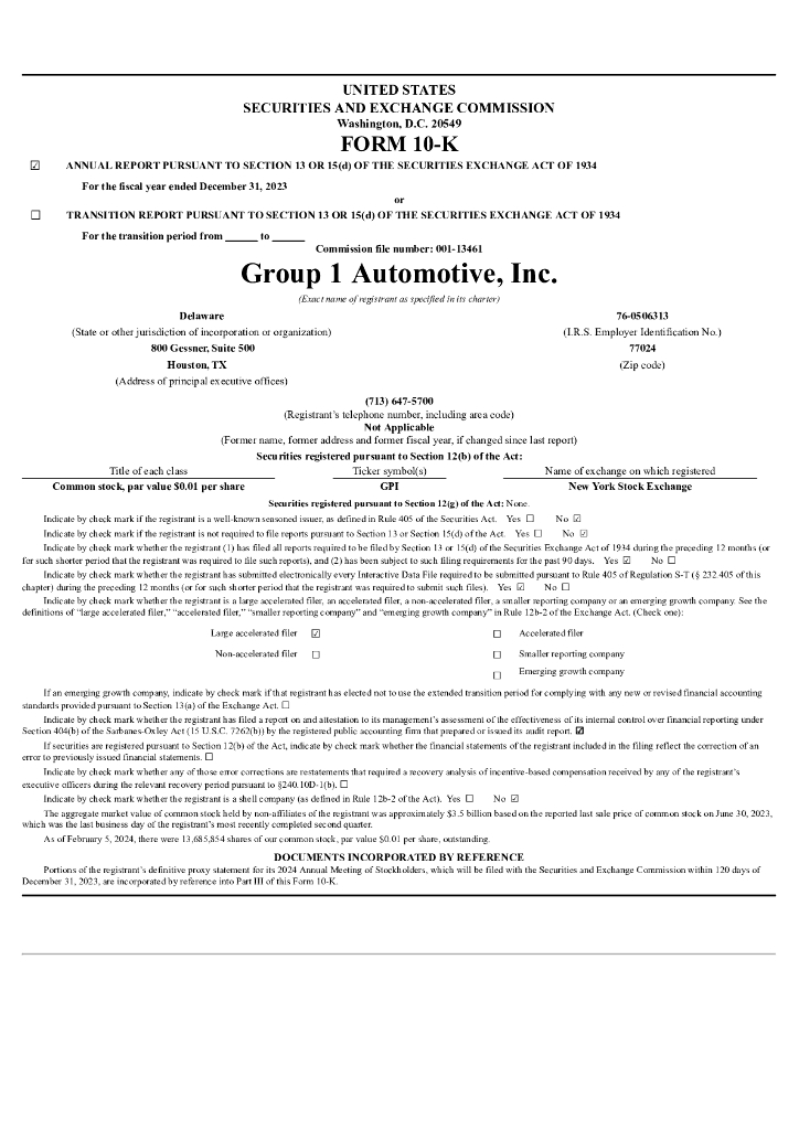 Group 1 Automotive Inc.(GPI)2023财年年度报告(英文版).pdf
